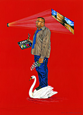 Animal/Insect: Swan. Associated with arts and intellectual discourse in traditional Indian iconography. (This symbolism particularly reflects the educational aims of the Sankofa group in that they create an intellectual context for the reception of their work in order to generate a discourse around it.)